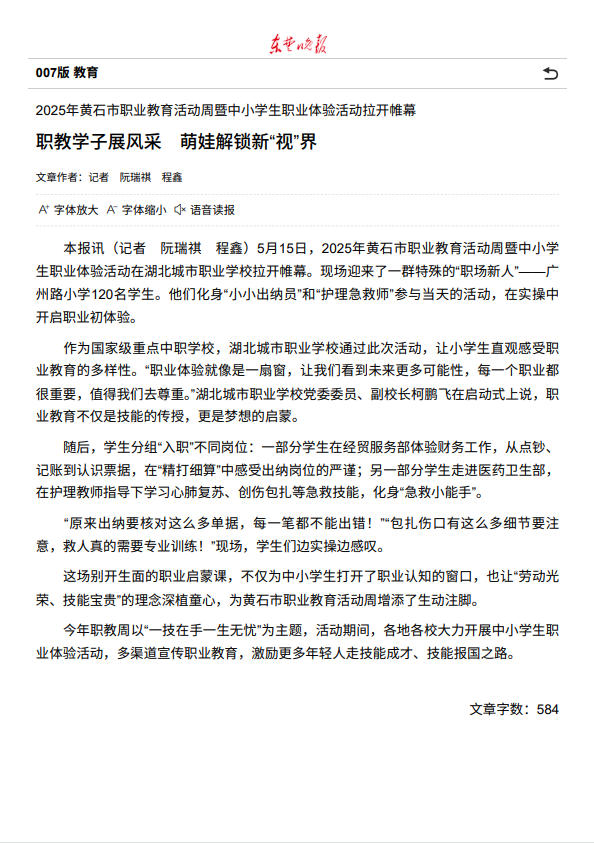 东楚晚报:职教学子展风采 萌娃解锁新“视”界