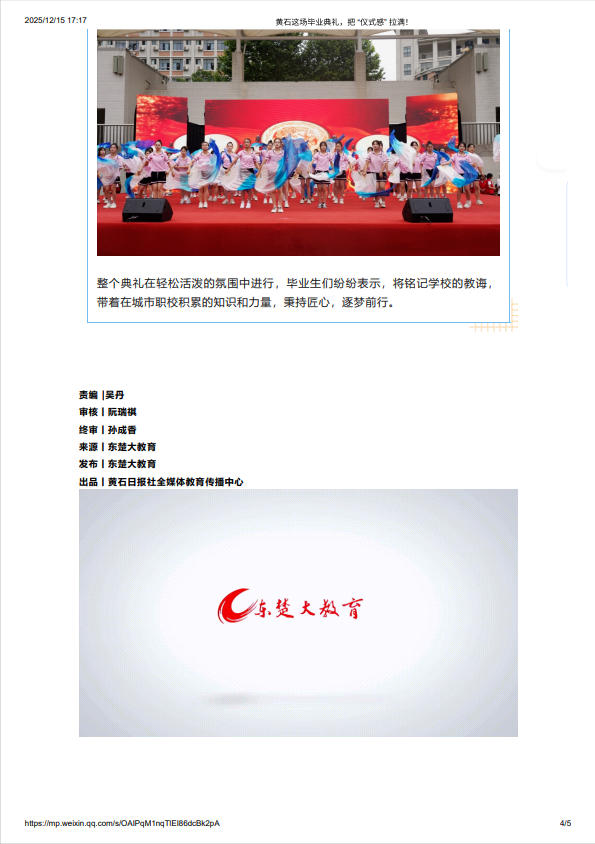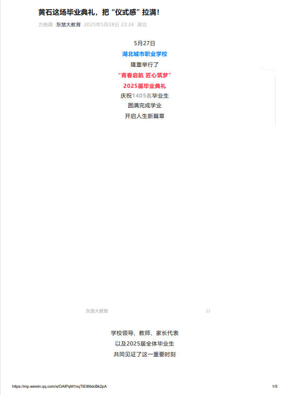 东楚大教育:黄石这场毕业典礼,把 “仪式感” 拉满!