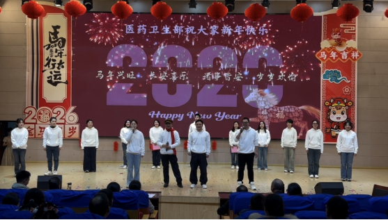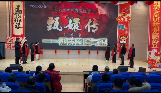 精彩纷呈的文艺节目轮番登场。各部门精心选送的节目形式多样、创意纷呈,现场掌声与欢呼声此起彼伏。制造部带来的歌舞《新年快乐》活力四射,瞬间点燃全场氛围;交建部小合唱《桃花朵朵开》旋律轻快,传递出盎然春意;学招培组情景剧《甄嬛传—期末的爱与恨》以幽默诙谐的方式演绎教育工作者的日常,引发全场教职工强烈共鸣;电信部歌舞《荷·炫风》歌声余韵悠长,舞蹈欢快逗趣;医卫部串烧《奔跑吧,医卫2.0》动感十足,展现出青年教职工的蓬勃朝气;教总组茶艺表演《茉莉芬芳》宁静典雅,尽显中华优秀传统文化魅力;党政工财组男生二重唱《红旗飘飘》深情满怀,抒发了全体教职工的爱国赤诚与教育情怀;经贸部歌舞串烧《再见》融合经典旋律与动感街舞,碰撞出别样精彩;校教工团支部国风秀衣袂飘飘、古韵盎然,尽显华服之美。联欢会的压轴节目由学校领导班子全体成员及全体中层干部共同演绎大合唱《奉献》,歌声铿锵有力,唱响了甘于奉献、勇于担当的时代主旋律,充分展现出学校管理团队团结一心、率先垂范的精神风采。节目演出期间,还穿插了趣味游戏和幸运抽奖环节,趣味互动妙趣横生,惊喜抽奖激动人心,现场欢笑声、喝彩声接连不断,节日氛围浓厚热烈。